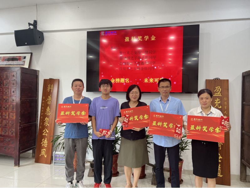 2022年8月29日上午,公司舉行了“盈科子女獎學金”頒發(fā)儀式,為智紅英之女馬一捷同學、陳建國之子陳志陽同學、袁國勤之子袁鑫明同學、薛菊芳之女楊金鈺同學同學頒發(fā)了盈科獎學金。